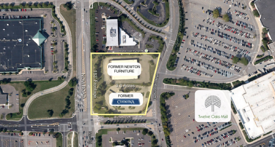 2 buildings on Ring Road outlot of 12 Oaks Mall- former McLaughlin Furniture 20,000 SF building, and 3,300 former Comerica Bank building on 3.3 acres. This space offers accomodations for: street retail.