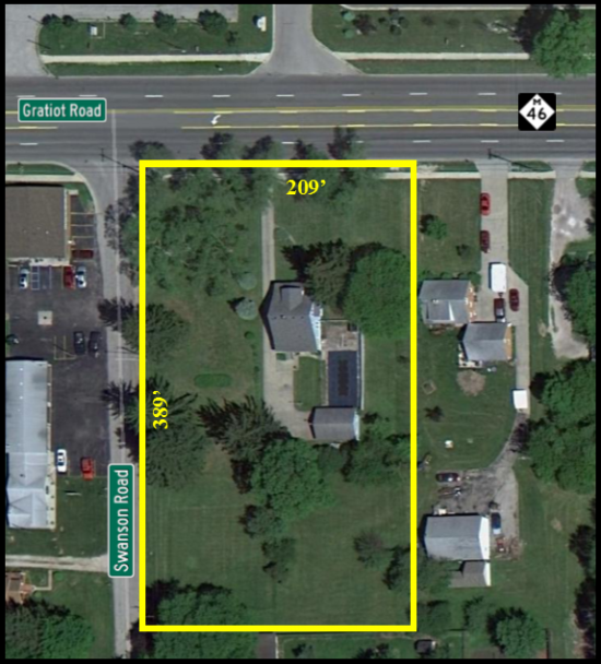 Corner lot, 1.87 acres. All utilities available on busy Gratiot Road!
