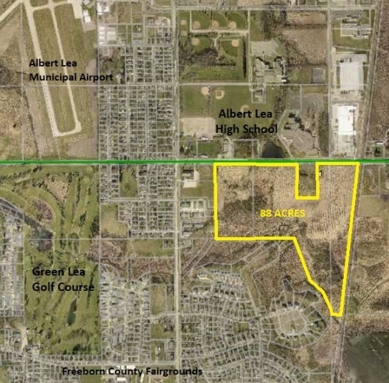 This 88.24 acres is located in Albert Lea, Minnesota is prime for redevelopment. Located adjacent from the Albert Lea High School, this site has a variety of potential options for development - from a multi/senior living community, residential, to expansion of industrial that is also adjacent. The currently tilled land is estimated to have 33 acres tillable acreage and 55 acres wetland, a development could have approximately 40 +/- acres buildable. This space offers accomodations for: multifamily.