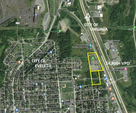701 Hat Trick Ave (the" Property") is located in the city of Eveleth and fronts MN State Highway 53. This elevated land gets great exposure to 15,000+ cars a day and is prime for redevelopment. Excited to see the property developed, the City has removed the former building creating a ready to build on site. Flexible in its use, the cooperative city can see developments such as, but not limited to: hospitality, retail, restaurant/fast-food [including drive thru], office/medical office, and more. The property is two separate parcels totaling 10.71 acres. There is potential for more adjacent land being available for a residential development. This space offers accomodations for: other.
