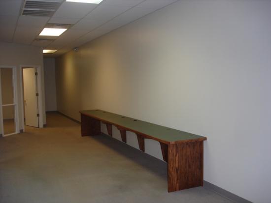 Open reception area, three large offices, built in work desks, open break area, suite wired for phone/data systems with multiple data ports in each office.