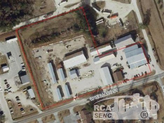 Two tracts totaling 4.84 +/- acres at the intersection of N Dudley Street and W. Wallace Street, just north of Burgaw's central business district. The property was previously a lumberyard, and contains numerous office, warehouse, and open covered storage buildings. Highest and best use would be demolition of the structures, and redevelopment of the property. The sites are currently zoned I-2 (Industrial) by the Town of Burgaw.