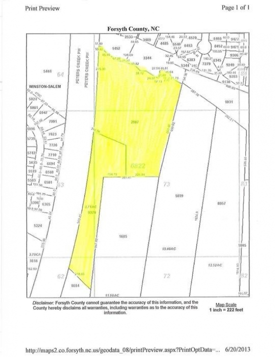 Property is on west side of new 4 lane portion of Peters Creek Parkway in a fast developing area. Subject to rezoning. Property extends from Peters Creek through to Old Salisbury Road. Will Subdivide. (Owner/Broker)