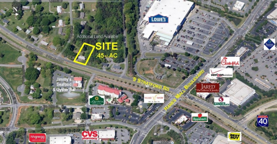 0.45 ACRES FOR SALE, 105FT FRONTAGE PREMIER DEVELOPMENT SITE S. Stratford Road, Winston-Salem, NC HANES MALL BOULEVARD RETAIL CORRIDOR This coveted location offers 0.45 acres and 105 feet of Stratford Rd frontage Additional land available Demographi
