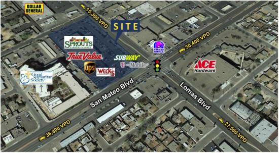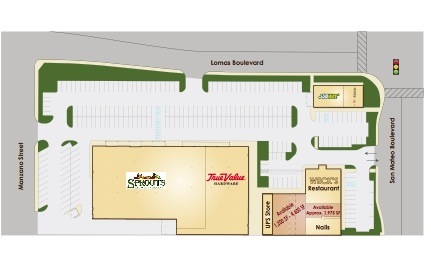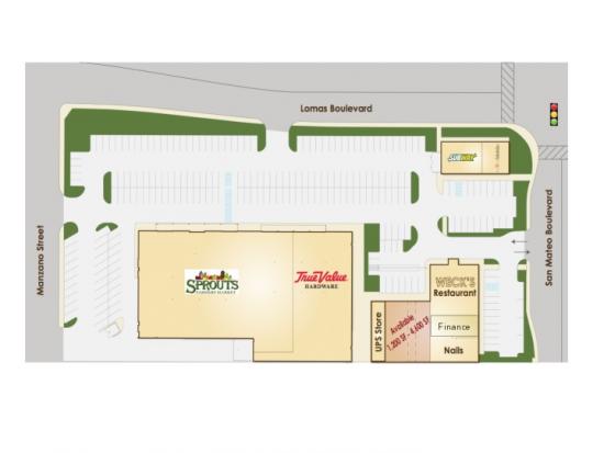 Strong grocery anchored retail at the corner of San Mateo and Lomas. Traffic counts are extremely strong. Flexible floor plan options available and TI allowance for qualified tenants.