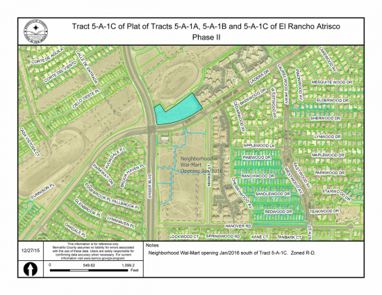 Directly north of property at the SEC of Unser & Ladera a new Wal-Mart Neighborhood Market with a pharmacy and gas opened in March of 2016. There are 5 additional sites for other retail uses adjacent to the Wal-Mart and a shop space building is under construction facing Unser Blvd.