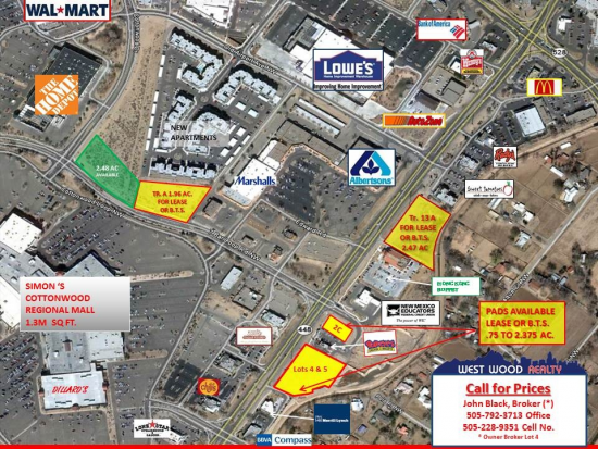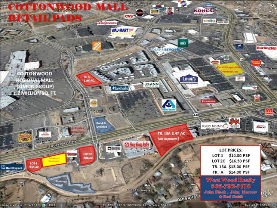 PRIME COMMERCIAL fronting Coors Blvd with great access! Next to Merrill Lynch, Compass Bank and others. Two (2) pad sites available for sale or lease.