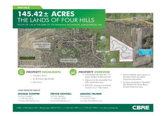Infill parcel currently zoned C-2 but prime candidate for rezoning in Four Hills area. Contact John Tekin for more info at 505.681.6483 or johntekin@gmail.com