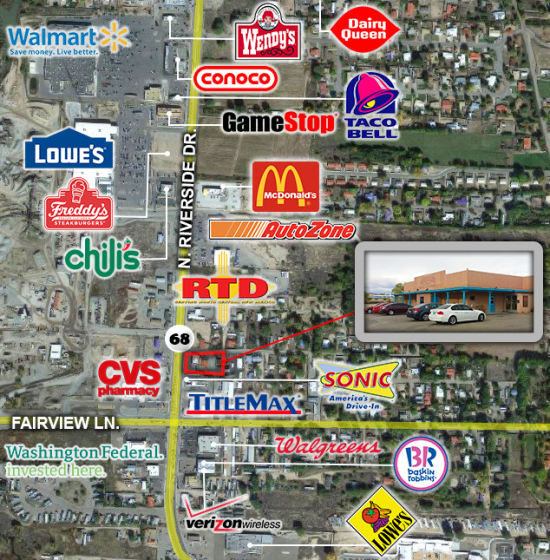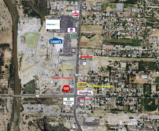 3/4 acre lot on Riverside Dr near the intersection of Fairview. Existing tenant is established restaurant with lease until 2020.