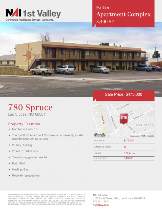 • The 8,400 SF Apartment Complex is conveniently located near the heart of Las Cruces.