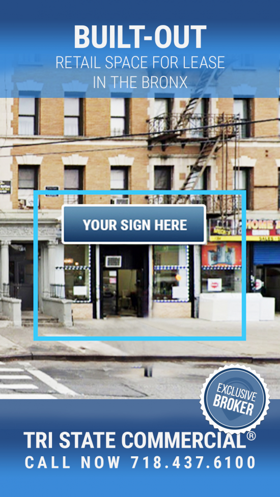 1,000 SF Built-Out Retail space for lease in the Bronx!