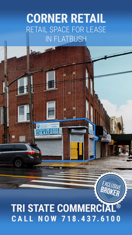 1,200 SF Corner Retail for lease in Flatbush!