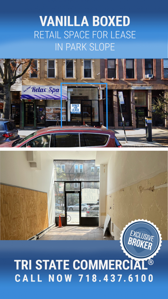 750 SF Vanilla Boxed Retail Space for lease in Park Slope!