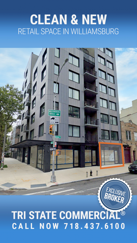650-1,450 SF Clean | New Retail Spaces for lease in Williamsburg!