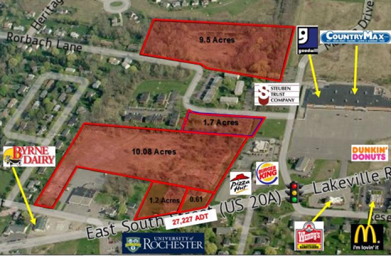 Five-parcel development site located in the Village of Geneseo between the SUNY Geneseo Campus and the Rt 20A commercial corrider (tenants include Wal-Mart, Webmans, Aldi, Hampton Inn). Located less that 4 miles from I-390. Site has frontage on Eat South Street (19.20A). Cemter St. and Jacqueline Way.