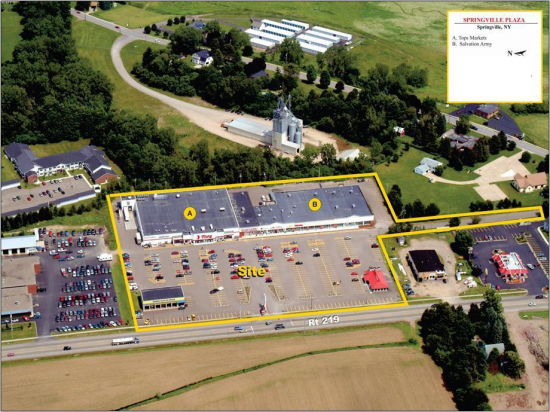 Tops Markets Springville Plaza currently has 8,550 +/- SF space adjacent in line to Tops Supermarket & an out parcels roughly 2,135+/- SF, availability at a rental rate starting at $15.00/SF NNN. Current tenants include Tops Markets, House of Television, Respiratory Services, Subway, TJ Maxx, Harbor Freight & Tools and Monroe Muffler. there is a population of 66,671 people with an average household income of $58,682 within 10 miles of the shopping center. Space is ideal for a liquor store, restaurant, or any type of retail or office. Other retail stores located nearby include Lowe's, Walmart, Aldi Foods, Tim Horton's, Dunkin' Donuts, KFC/Taco Bell, Tractor Supply Company, Dollar Tree, and Maurices. Former Pizza Hut approximately 2,135 square feet located on the out parcel to this plaza is also available for lease. Space is ideal for multiple businesses. Open to any reasonable offers. This space offers accomodations for: strip center.
