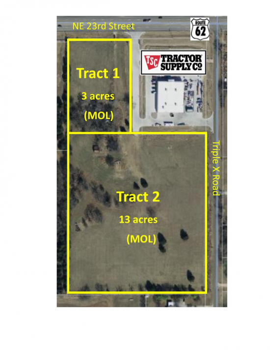 This tract contains 16 acres which can be divided into smaller parcels. The property is zoned general commercial which allows for multiple types of commercial development. This site surrounds Tractor Supply. This space offers accomodations for: retail.