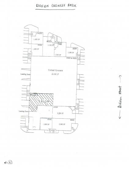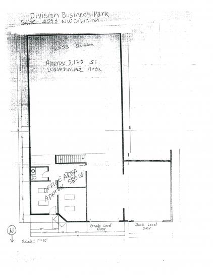600 SF office area, 3120 SF warehouse area. Good visibility on Division Street, ample parking, sign space available. $.35/SF-shell $.50/SF-office plus NNN (2013 .19/SF Mo)