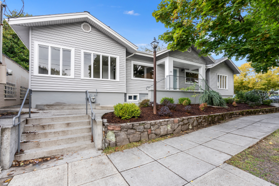 Formerly the location of a chiropractic business, this renovated 1920's home presents beautiful light filled interiors with preserved architectural touches from the past. Freshly painted neutral tones lend a cozy feeling to the substantial 3,155 SF interior. The main floor includes a reception area, office, conference room, five exam rooms or additional offices, restroom, and storage closets. The large finished basement includes three rooms, washer/dryer hookups, and a restroom. The property falls with general office zoning, accommodating a wide variety of uses. This space offers accomodations for: office building.