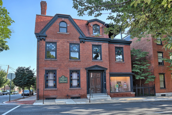 Historic Queen Anne style building w/ pitched gambrel roof, gorgeous & unique stained glass windows, several original fireplaces, original & well maintained woodwork. Elegant street presence along Orange & Shippen Sts. 9,142 sf Bldg + add'l usable footage in lower level. 10 car parking lot & 3 Car Garage (1,316+/- sf). Covered balcony on 3rd floor, 2 restrooms each floor, 2 kitchens/break rooms, several beautiful large rooms throughout.