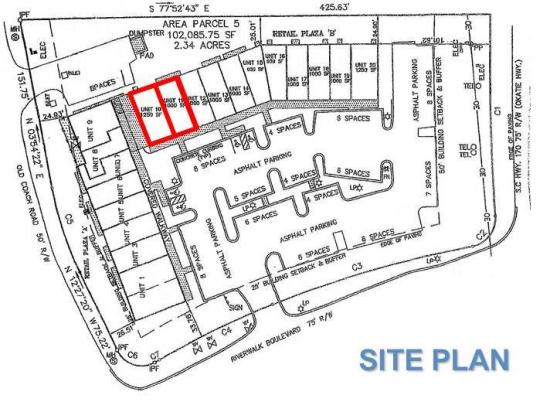 Riverwalk Commons is located directly on Highway 170 with approximately 200' of frontage and high traffic counts. It is less than 2 miles from the major Highway 278 interchange, where the 268-acre commercial development, Okatie Center, is planned with a Wendy's, Zaxby's, Advance Auto, Cracker Barrel, Firestone and Ethan Allen already in place. Also nearby are Sun City Hilton Head (with 14,000 residents, age 50+) and two colleges (University of South Carolina/Bluffton and the Technical College of the Lowcountry). This is a high-traffic and high-growth area and centrally located near Beaufort, Bluffton, Hilton Head Island and Savannah.