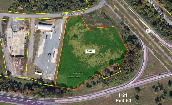 Excellent 5.0 acre tract at Exit 50, Fall Branch Exit of I-81. Located on northwest side of interstate at corner of Joe McCrary Road and Hwy 93. Site has been graded and soils survey performed. Tract can accommodate 3600 gallons/day design flow for waste system per soils scientist. Available for sale or for lease. Tract can be subdivided for multiple uses. Location suitable for convenience store with restaurant, standalone restaurant, or hotel desiring easy interstate access and visibility.