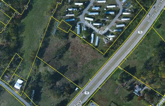 2 AC +/- IN PRIME LOCATION WITH 176FT OF FRONTAGE ON BOBBY HICKS PKWY/OVER 400FT FRONTAGE ON CEDAR CREEK RD. IN VIEW OF HWY 36 INTERSECTION - NEWLY RE-ZONED B-5!!! ANNEXED INTO JOHNSON CITY!!! Bobby Hicks PKWY expansion to Tri-Cities Airport now complete and HWY 36 expansion now complete from this intersection to Boones Creek. This highly visible property with great business potential is available in key locale with double street frontage on Bobby Hicks Hwy 75 and Cedar Creek Road in Gray. Located only minutes from Tri-Cities Regional Airport and I-26, Gray exit. Within view of HWY 36 intersection, this land is priced to sell. City of JC Planning has stated utilities, including sewer, will be provided to property during development (Utility Info must be verified by interested parties with JC Planning office, 423-434-6059) Additional acreage is also available across HWY 75. All information, acerage, utility availability must be verified by buyer/agent. Price includes home on property currently being rented for $450/mo. Tenants only require 30-day notice if land is purchased. Buyer may demolish and clear to make 2 clear acres for build. Taxes are assessed on full parcel which is split by Hwy 75.