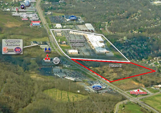 This exceptional 20+ acre tract is situated contiguous to the Target-anchored power center known as Kingsport Pavilion in the growing Tri Cities area of northeast Tennessee. The tract lends itself to multiple uses, is attractive and well located. Two additional outparcels also available, contact agent for further details. Retail expansion or upscale apartments top the list of market needs. See attached marketing package for propertty details along with site and concept plans.