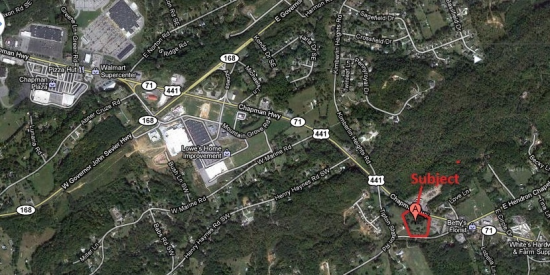 Commercial property consist of 4 acres that could be developed with 400 feet of road frontage on Chapman Highway. Property also consist of a 3200 square foot home that could be renovated to make an office.