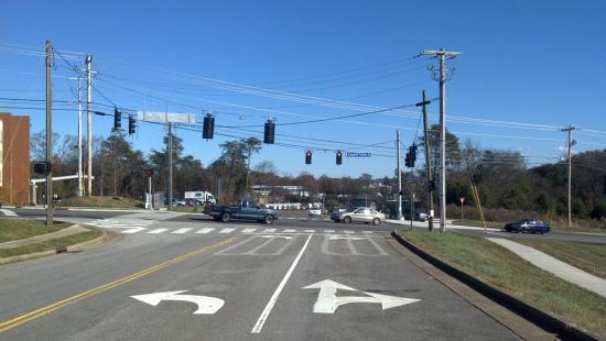 At a hard corner with traffic signal (Campbell Station/Snyder Rd)