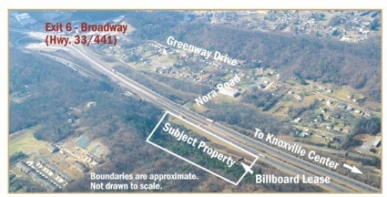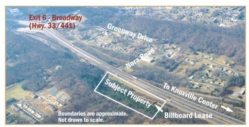 Highly visible from I-640. Estimate 5 acres available w/o site prep.; ; From I-640, exit 6 Broadway, travel 1/10 mi. Nor. on Broadway to rt. on Greenway, go 4/10 mi. east to rt. Nora Road for 2/10 mi. to property on left.