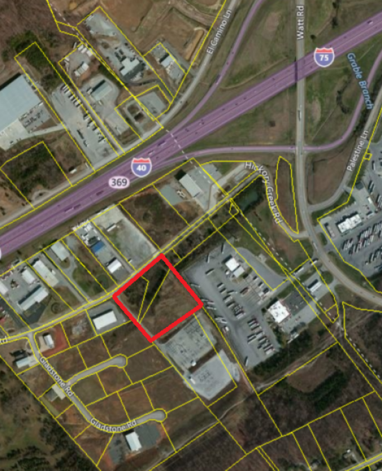 Property is highly visible with frontage on I-75/40 and Hickory Creek Rd. I-75/40 average daily traffic counts of 84,400. Easy access to Exit 369 Watt Rd. Less than ½ mile. Property consists of two tracts and can be sold separately.