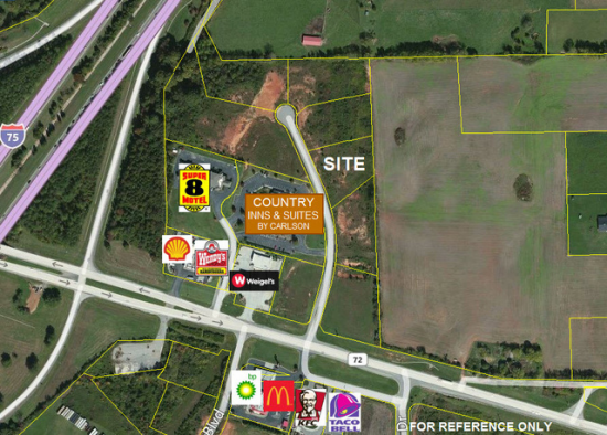 Office/Retail Parcel just off the I-75 Hwy 72 Exit in Loudon, Tennessee. Growing Exit populated with several fast food/retail businesses.
