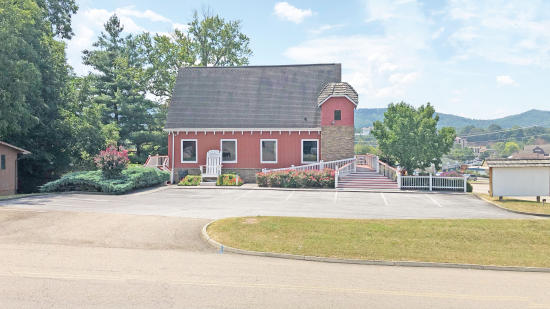 Eye-catching office building (former wedding chapel) for sale: 2,400 well-maintained square feet of office/commercial space on a high traffic location in Pigeon Forge, Tennessee with excellent visibility from Veterans Boulevard and Teaster Lane and close to the Parkway.