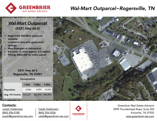 Wal-Mart outparcel that is 8.4 Acres +/- with approximately 2.5 usable. Located in an area with good retail synergy and growing development. Retail epicenter of the trade area.