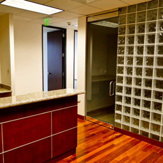 Reception with tile entry and built-in reception desk with granite countertop.3 Window Offices, 1 Conference Room, Kitchen, Sink, Corner Location,... or view detailed page | |||