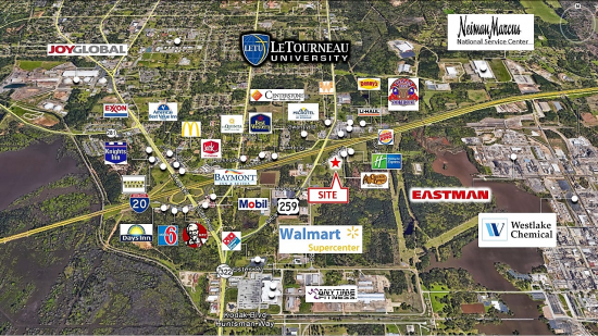 This highly coveted pad site is available at the intersection of Interstate 20 and Highway 259. The properties that also enjoy this vibrant site are Cracker Barrel and Holiday Inn Express. Traffic counts on Interstate 20 are estimated to be over 40,000 VPD and Highway 259 enjoys over 20,000 VPD. This space offers accomodations for: retail pad.