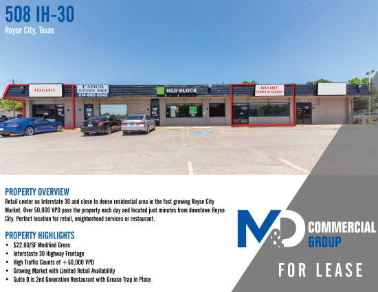 Retail center on Interstate 30 and close to dense residential area in the fast growing Royse City