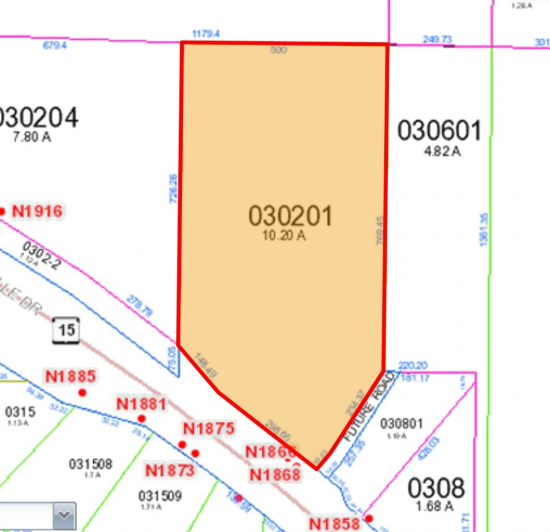 PRIME DEVELOPMENT LAND just outside Greenville. High visibility location on HWY 15. Electric, natural gas, city sewer & water available to parcels. This space offers accomodations for: other.